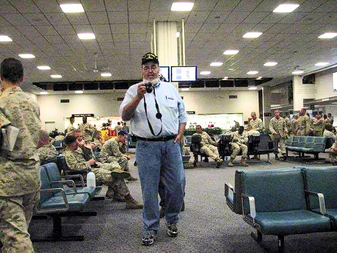 He started taking pictures of the Troops in 2007 and started his website to share these pictures with their families. https://ourstopinmaine.smugmug.com/ Bud was at the airport to greet the Troops at all hours of the day and night. His focus was all about the Troops; to make sure that they felt valued, honored and appreciated. Every night when he came home, he was smiling. He just loved the Troops!
